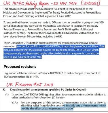 In this regard, a parallel may be drawn from the UK tax laws. Section 2 of the TIOP Act 2010 (𝘴𝘪𝘮𝘪𝘭𝘢𝘳 𝘵𝘰 𝘴𝘦𝘤𝘵𝘪𝘰𝘯 90) only allowed for entering into bilateral tax treaties. In order to implement MLI, it was specifically amended to enable Her Majesty to enter into “arrangements which modify the effect of arrangements so made”.